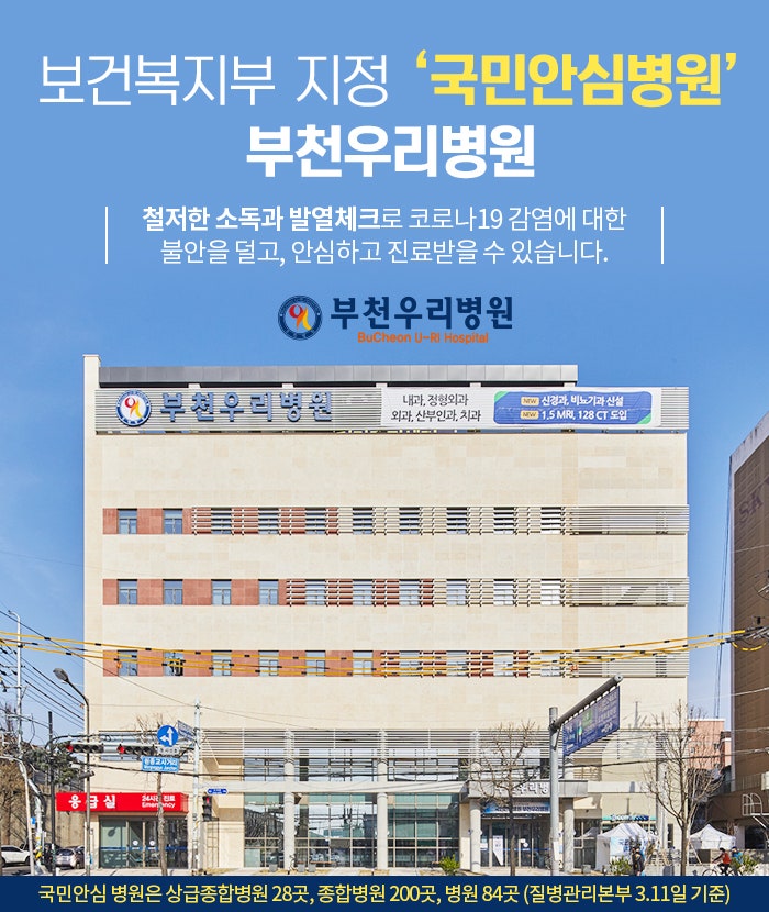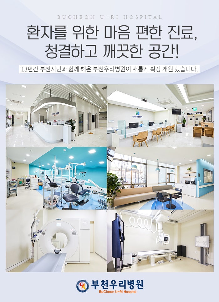 부천우리병원 전화 032-672-4100홈페이지 예약 및 네이버톡, 카카오톡 상담으로도 진료상담 및 예약이 가능합니다.홈페이지 예약 및 네이버톡, 카카오톡 상담으로도 진료상담 및 예약이 가능합니다.홈페이지 예약 및 네이버톡, 카카오톡 상담으로도 진료상담 및 예약이 가능합니다.