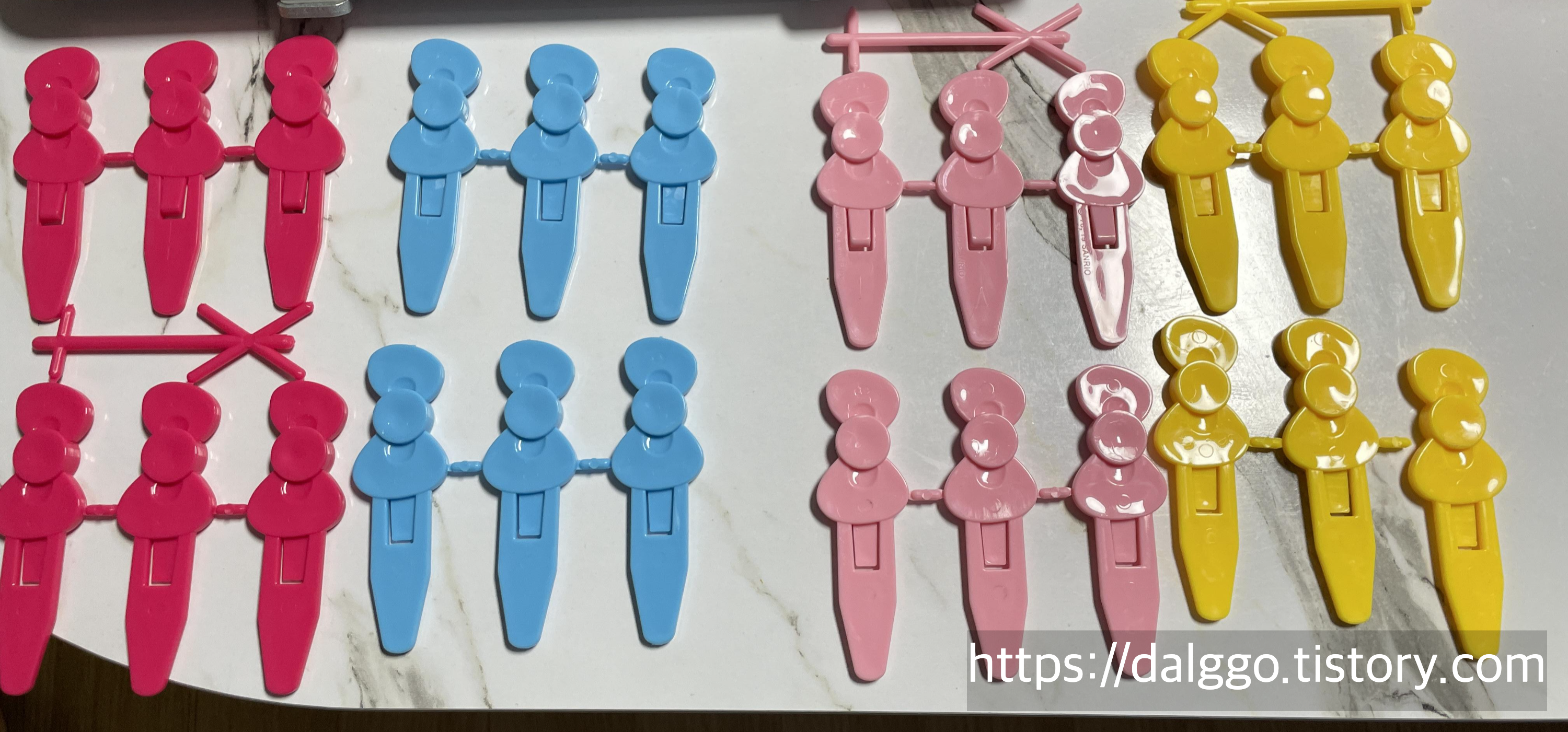 각 색상의 스틱이 6개 있습니다.